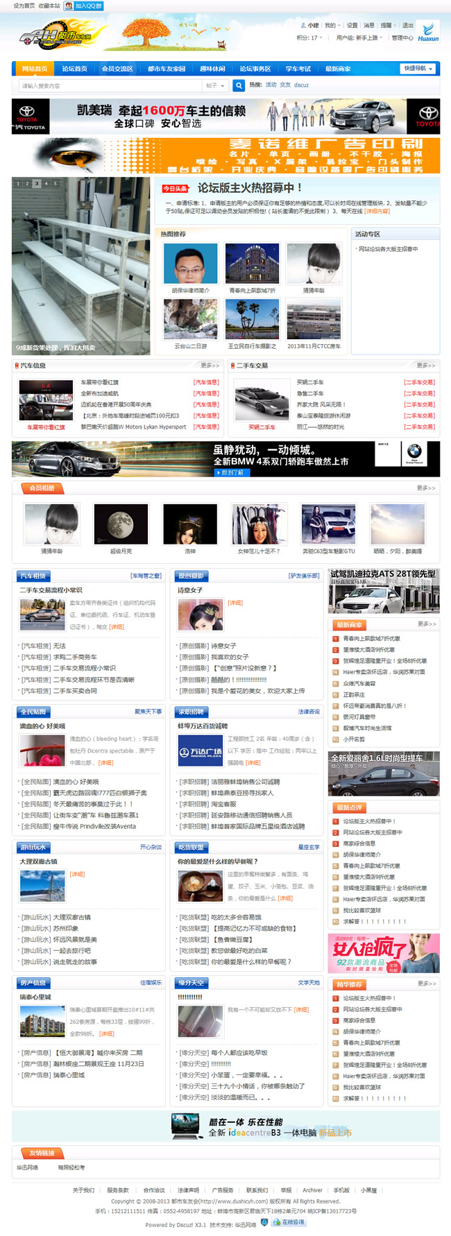 都市車友會(huì)是蚌埠地區(qū)最具影響力的百姓生活信息網(wǎng)絡(luò)平臺(tái),擁有超過4萬的注冊(cè)會(huì)員,承辦過“珠城十佳人民警察”評(píng)選、“雙十佳”法官檢察官評(píng)選、十佳律師評(píng)選、“珠城百姓口碑榜”評(píng)選、“心動(dòng)2011——讓我們邂逅在龍子湖畔”大型交友聯(lián)誼會(huì)等大型活動(dòng)。