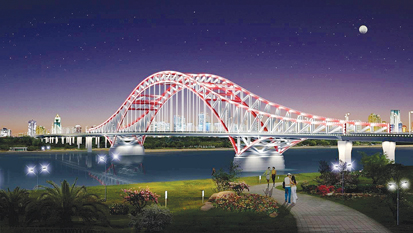 長淮衛(wèi)公路橋及接線工程全長14.1公里。整個工程除長淮衛(wèi)公路橋外,還包括兩座下穿鐵路立交橋和兩座小型橋梁,工程概算總投資約18億元。據(jù)介紹,長淮衛(wèi)公路橋總長4266米,南起龍子湖區(qū)長淮衛(wèi)鎮(zhèn),北接淮上區(qū)吳小街鎮(zhèn)。大橋主橋長360米,寬42.5米,為雙向八車道;引橋部分略窄,寬41.5米。長淮衛(wèi)橋采用桁架拱橋橋型,主體為鋼結(jié)構(gòu),遠望如飛龍橫跨淮河,氣勢宏偉。我市現(xiàn)有的三座淮河公路橋分別是斜拉橋、梁式橋和懸索橋,如今再添桁架拱橋,一橋一景,仿佛橋梁博物館。