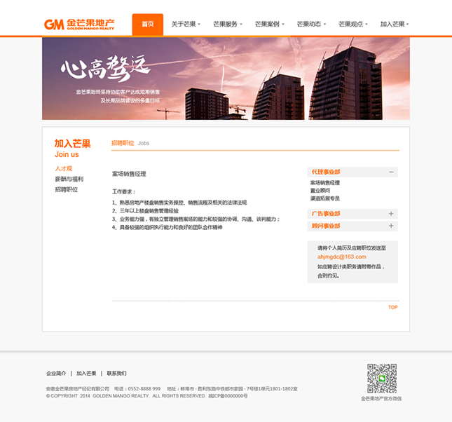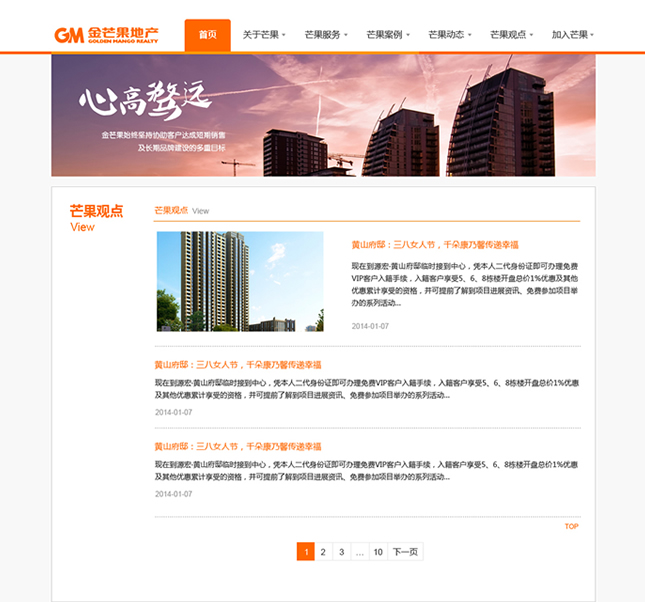 金芒果基于對中國房地產(chǎn)的執(zhí)著追求,憑借對市場營銷的激情創(chuàng)新,以完全經(jīng)過市場檢驗的專家團隊和對市場的敏銳天賦,大膽構(gòu)思、執(zhí)著實踐、激情專注、科學(xué)分析,贏得了業(yè)主的廣泛認同和支持,并以優(yōu)異業(yè)績和服務(wù)質(zhì)量,被客戶譽為具實效、富激情、科學(xué)嚴謹?shù)膶I(yè)房地產(chǎn)服務(wù)商。